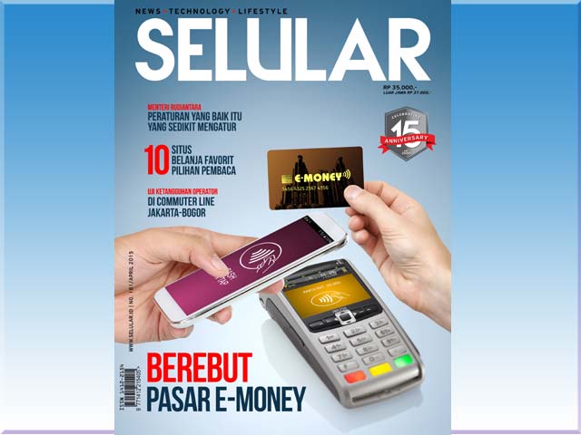 “BEREBUT PASAR E-MONEY”. Itulah tajuk utama yang diangkat oleh Majalah SELULAR di edisi April 2015. Ada banyak implementasi dari Less Cash Society, seperti ATM Banking, SMS Banking, Internet Banking, Phone Banking, Uang Elektronik/Prepaid. Juga e-commerce yang meliputi Debit Online dan Walet.