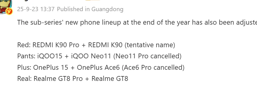 OnePlus juga disebutkan akan meluncurkan OnePlus 15 dengan chipset terbaru dan OnePlus Ace 6 dengan chipset generasi sebelumnya, dengan rencana OnePlus Ace 6 Pro yang juga ikut dibatalkan.