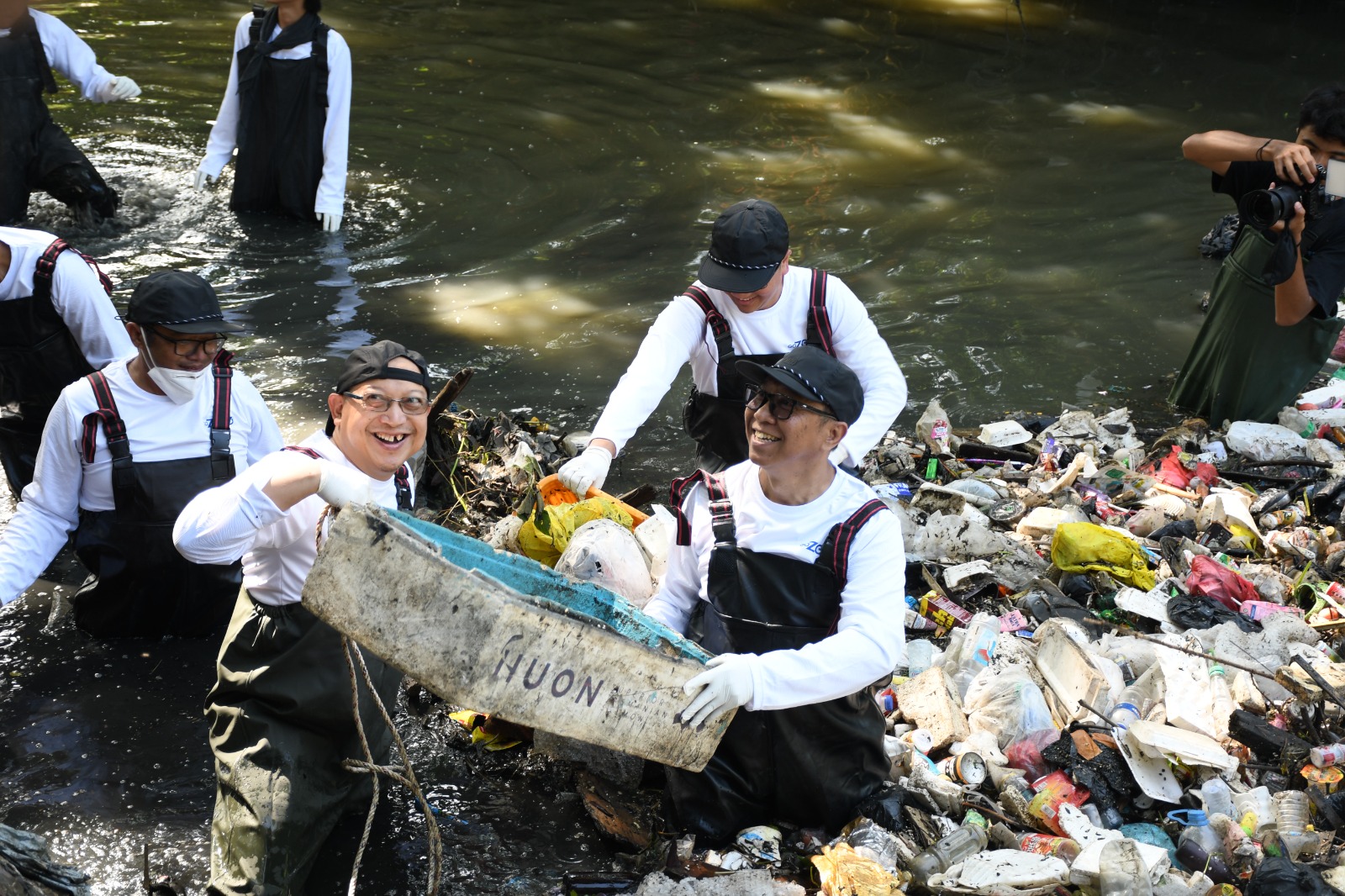Telkom dan Pandawara Bersihkan 1,4 Ton Sampah di Sungai Cioray Bandung